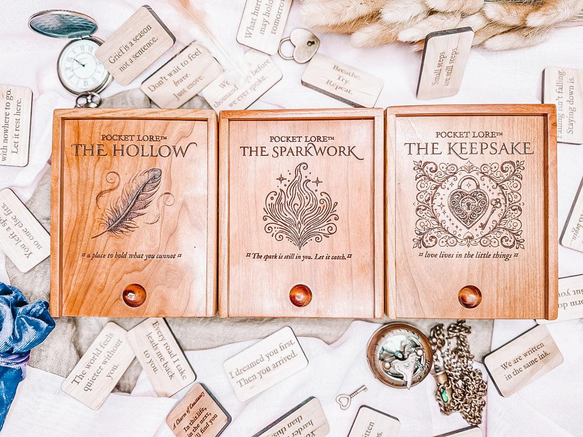 Explore the full library of Pocket Lore sets, from soft spells and secret thoughts to bold truths and bright sparks.
